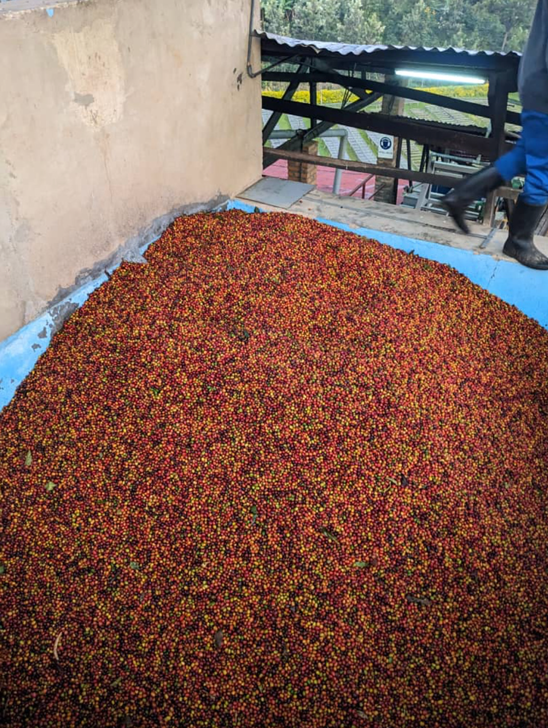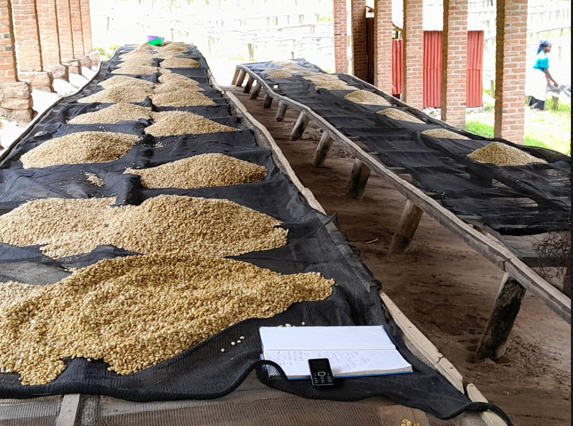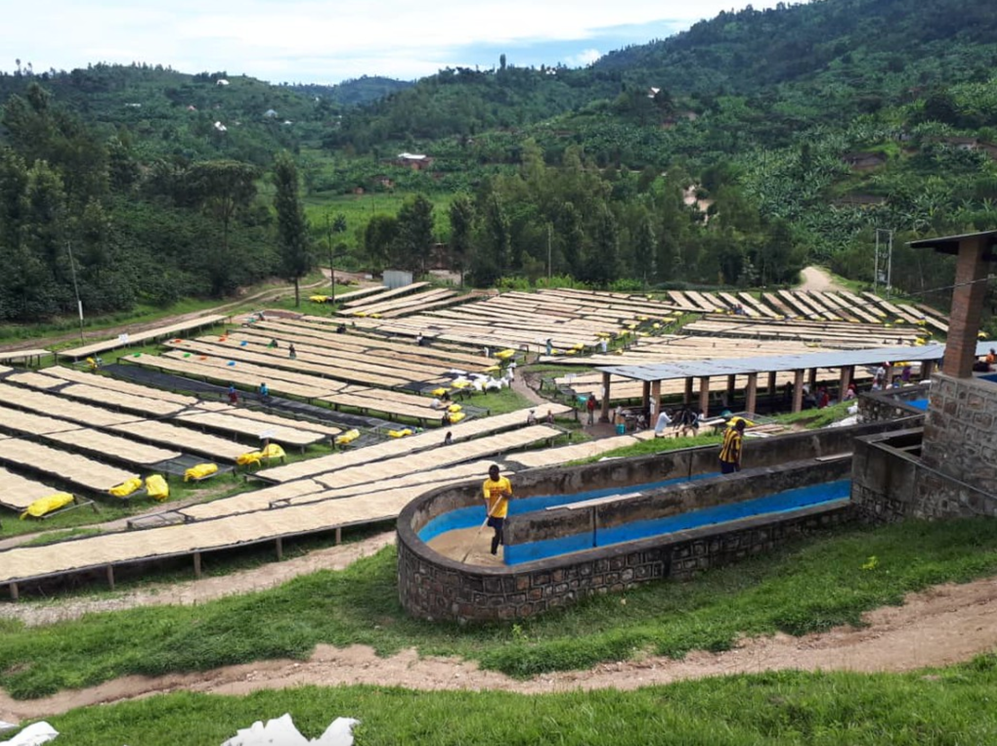 Rugamba wet mill was constructed in 2009. The station located at the shores of Lake Kivu (one of the great lakes), processes cherries grown in the hills surrounding the lake, at a high altitude, in rich volcanic soil.