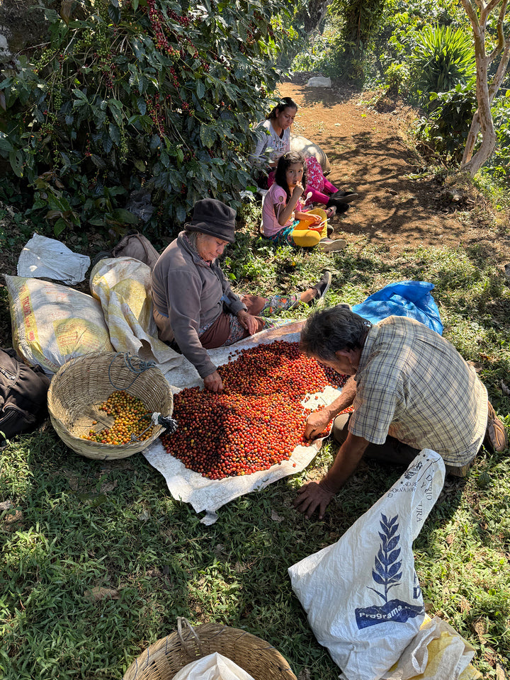 Finca Noruega consists of 43 blocks planted with a range of varieties from bourbon to geisha in the Ahuachapán mountain range in the west of El Salvador. This farm is part of the Los Naranjos group headed by Sigfredo Corado, a retired professor of agronomy from the National School of Agriculture. The farm is part of the Renacer Program which is a technical coffee field school for producers in the area to learn about better farm management practices. This program is funded by Raices (Roots) and supported by Catholic Relief Services in El Salvador.
