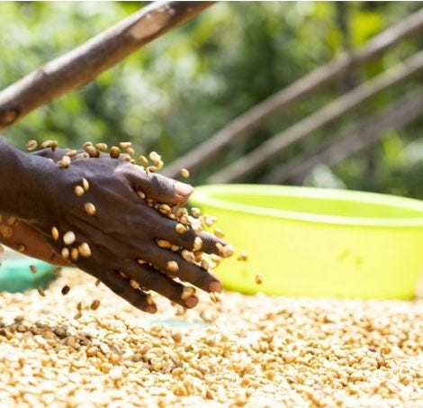 Ripe coffee cherries are selectively harvested and then delivered to the wet mill. The cherries are floated in a clean water tank to separate by density (lower quality cherries float and are removed). The selected cherries are then pulped and immediately dried on shaded, raised beds. The drying takes an average of 21 days. After drying the coffee is rested in its parchment for around 1 month before moving to a dry mill for secondary processing (hulling, sorting, grading, handpicking and bagging in Grainpro/Ecotact bags for export