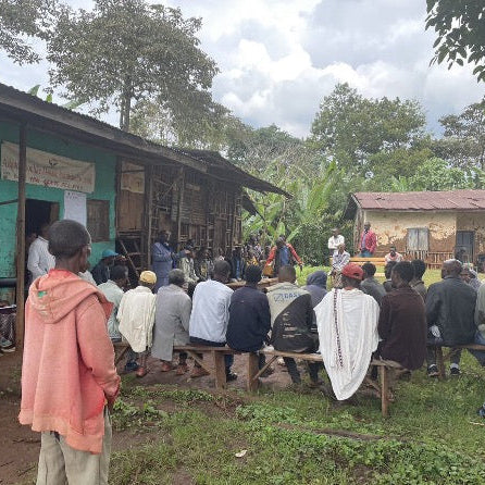 Below is an excerpt from DR Wakefield's (our importer for this coffee) 2024 origin report: We started the Sweet Berry Project back in 2021 as a means of giving back to the communities from which we buy coffee. The aim of the project is to use part of the premium to fund clean water initiatives in Ethiopia. According to WaterAid, almost four in ten of the country’s 99 million don’t have clean water. Lack of this, alongside poor sanitation can lead to a whole host of preventable diseases. It is estimated that up to 80% of infectious disease cases in Ethiopia, and up to 15% of child deaths are caused by this (according to UNICEF). This year, we are happy to partner with local Ethiopian coffee exporter, BNT, to provide clean water to Idido Village in Yirgacheffe region. The Village itself sits at the top of the hill, with most villages living alongside the road on the ridge. At the end of 2023 we visited Idido village to see how we could use this project to help them. After touring their washing station and sitting in on a town hall session, we tried to visit some contributing farms but our 4×4 got stuck in the mud before we could get that far. A stark reminder of some of the issues these villagers face daily.